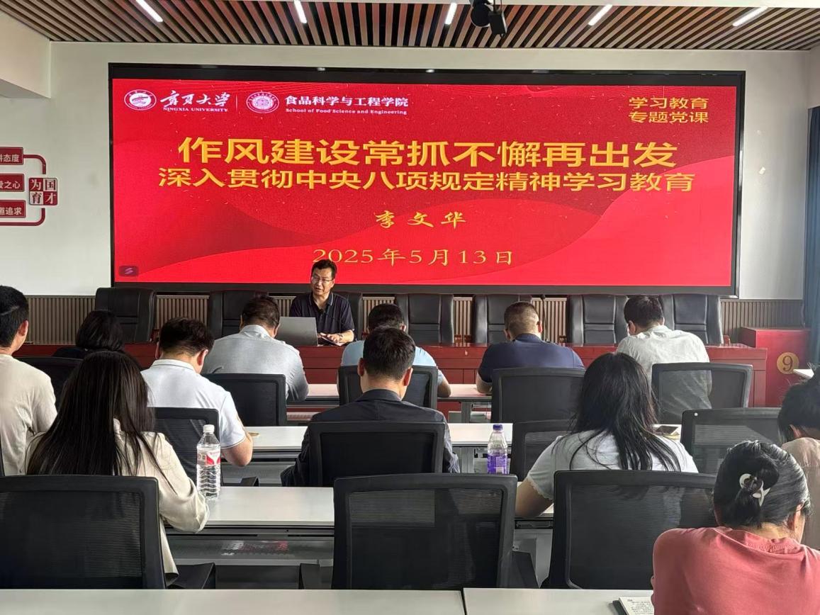 党总支于5月21日下午在明远楼512会议室组织开展学习教育专题党课讲座。讲座以“作风建设常抓不懈再出发——深入贯彻中央八项规定精神”为主题,由学院党总支书记李文华主讲,全体党员教师参加学习。