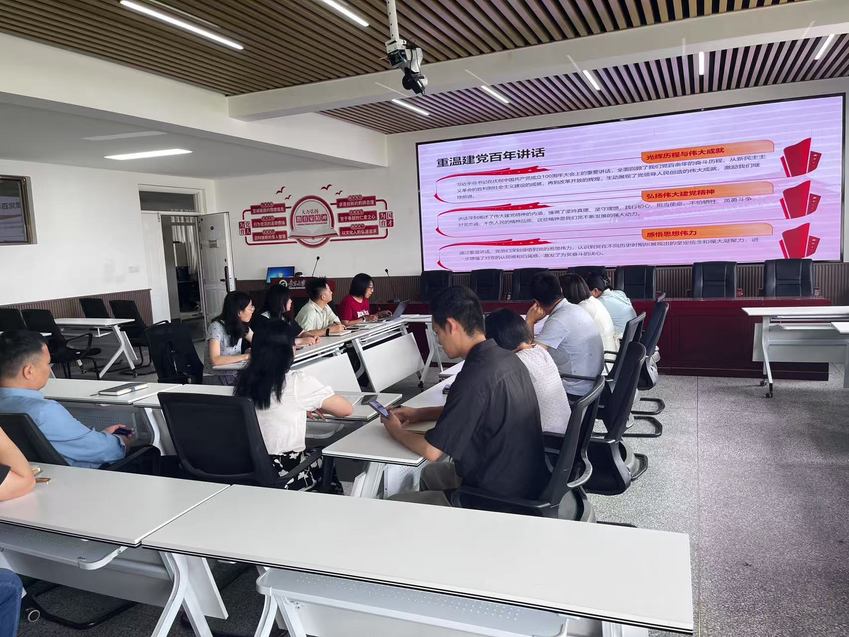 活动中,党支部书记潘琳以《弘扬伟大建党精神》为主题讲授专题党课,带领全体党员深入学习习近平总书记在庆祝中国共产党成立100周年大会上的重要讲话精神。党课重点围绕习近平总书记“七一”重要讲话的重大意义、重点内容和重要亮点展开深入讲解,深刻阐释了“坚持真理、坚守理想,践行初心、担当使命,不怕牺牲、英勇斗争,对党忠诚、不负人民”的伟大建党精神。支部书记强调,作为高校教育工作者,要始终牢记立德树人根本任务,将伟大建党精神转化为推动教育事业发展的强大动力。