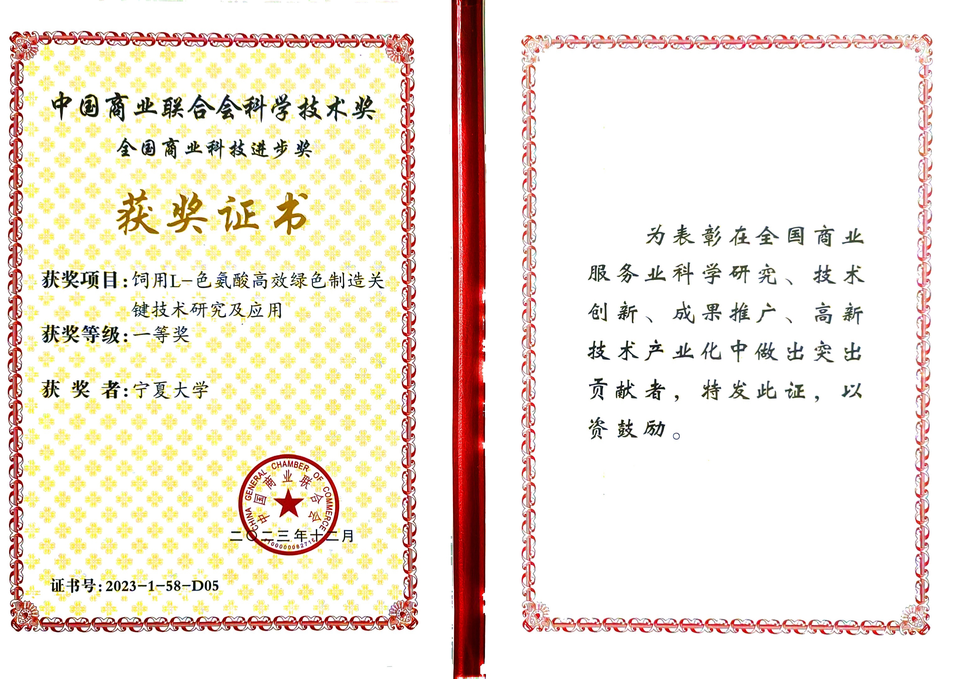 由德州扑克游戏健康食品生物制造研究团队方海田教授、刘慧燕副教授和魏晓博博士参与完成的成果“饲用L-色氨酸高效绿色制造关键技术研究及应用”获得了中国商业联合会2023年度全国商业科技进步奖一等奖。
