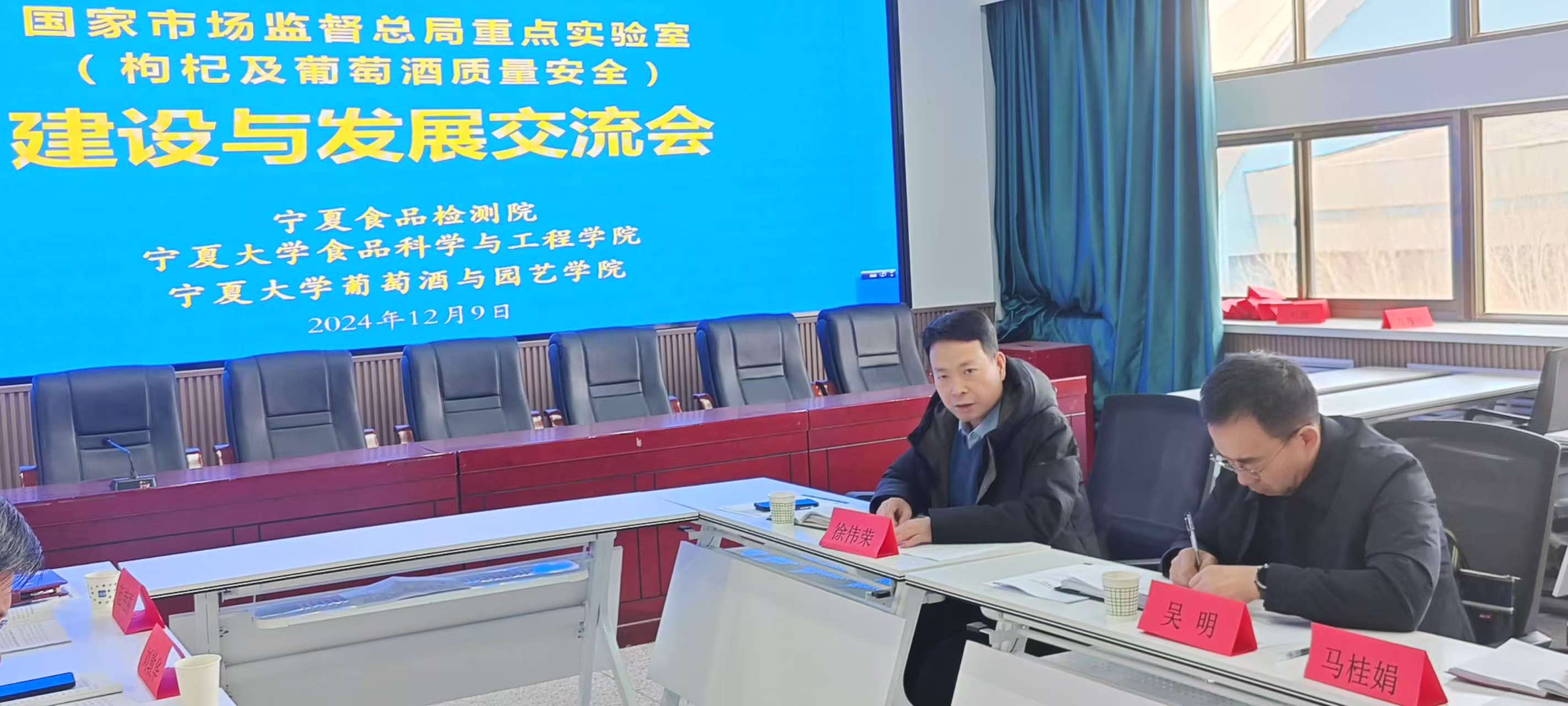12月9日,宁夏回族自治区食品检测研究院院长吴明、副院长马桂娟一行莅临德州扑克游戏 ,共商国家市场监督管理总局重点实验室(枸杞及葡萄酒质量安全)建设发展,助力宁夏特色食品产业高质量发展。