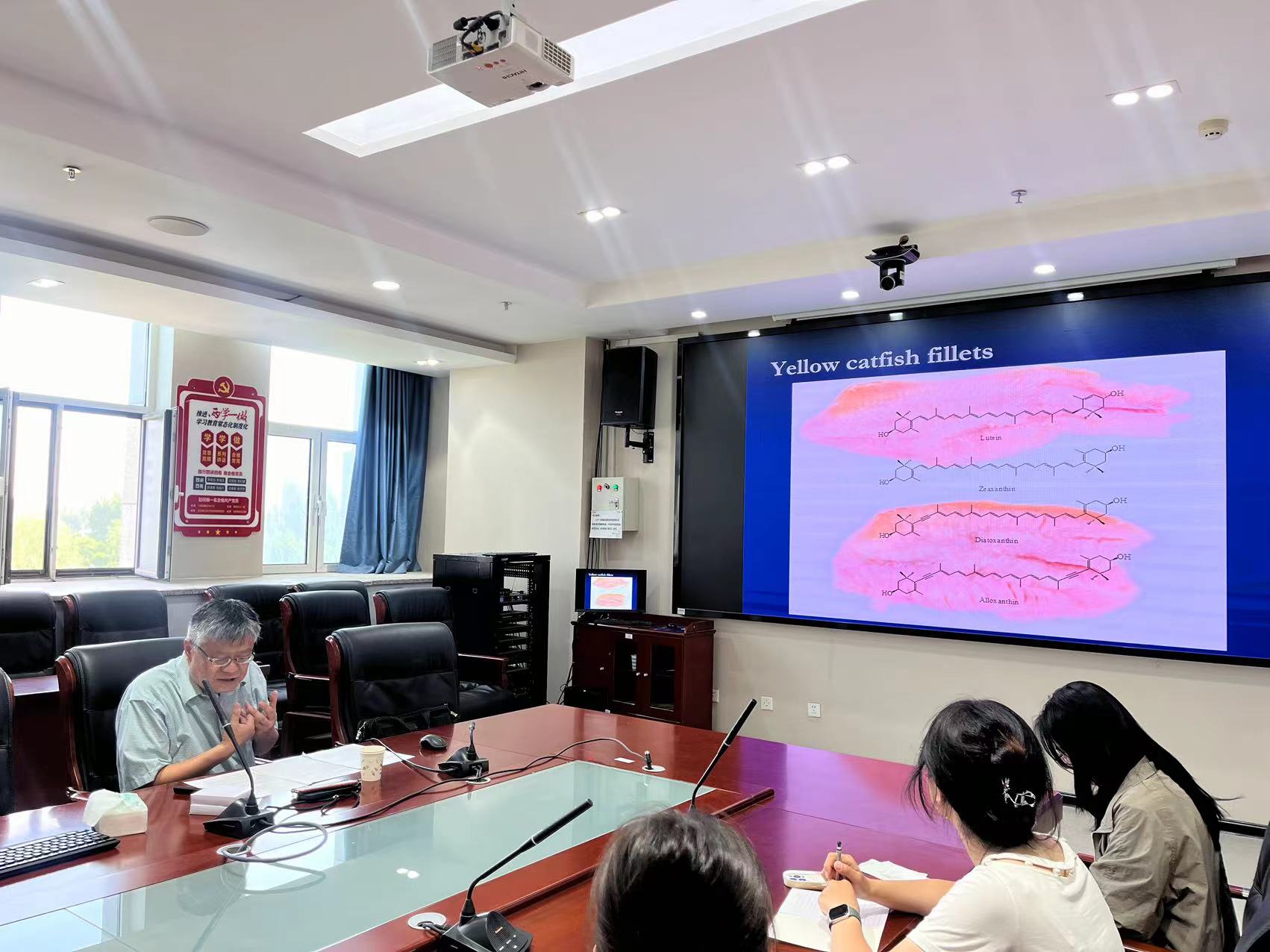 本次报告,王易芬教授对鱼肉样品中类胡萝卜素发现过程做详细介绍,包括色素异常的试验观察到试验猜想和完成验证的过程。启迪同学们的研究思想,引发科学研究探索的热情。学院师生就类胡萝卜素以及食物中色素的不同提取鉴定方式与王易芬教授进行了广泛探讨。