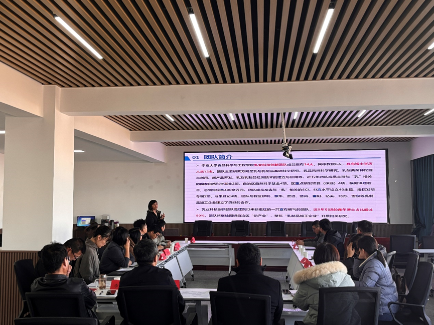 会上,德州扑克游戏乳业科技创新团队剧柠老师详细介绍了团队的成员构成、研究方向及科研成果。团队现有成员 14 人,其中教授6人,博士学历人员12名。近五年,团队在乳制品基础科学研究、乳品风味科学研究、乳酸菌菌种挖掘与利用等方面取得了丰硕成果,主持多项国家和自治区级科研项目,发表高水平论文 40 余篇,授权发明专利 5 项,成果登记 4 项,并与区内多家乳制品企业建立了良好合作关系。