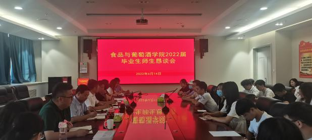 为更好地倾听毕业生的心声,充分了解毕业生的学习、生活、就业情况,不断强化学院管理育人、服务育人的针对性与实效性,2022年6月14日上午9:30食品与葡萄酒学院于科技楼A410召开2022届毕业生师生恳谈会。