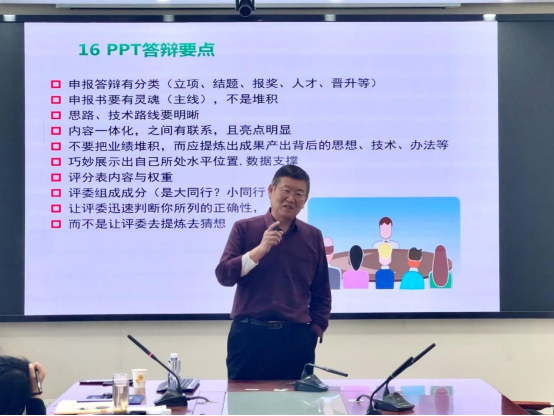 下午,在全院大会上,林洪教授结合自身经历和新时代高校青年教师的特点及职业发展需要,作了《青年科研工作者职业规划》专题讲座;从国家基金会评专家的视觉,结合国家自然科学基金申报立项依据、研究内容、创新性及可行性等20个方面,作了《国家自然科学基金申报辅导》专题讲座,并就大家关心的问题进行了解答交流。