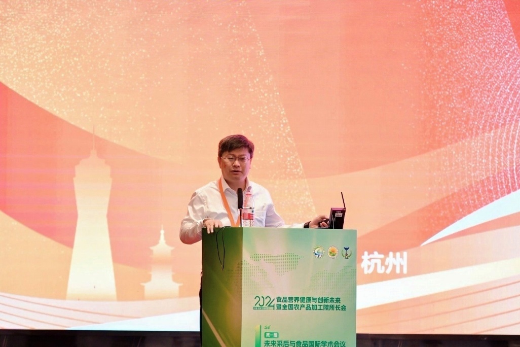 “食品营养健康与创新未来研讨会”的大会开幕式由农科院院长林福呈主持,浙江省科学技术协会副主席曾肖芃、中国食品科学技术学会名誉理事长孟素荷、中国农业科学院副院长刘现武、中国农村技术开发中心副主任张辉、农业农村部乡村产业发展司(农产品加工指导司)农产品加工处处长梁苗分别致辞。研讨会共安排了22场报告,德州扑克游戏院长刘源教授受邀担任报告会场主持并做精彩演讲。同日下午召开“全国农产品加工院所长座谈会”,德州扑克游戏院长受邀参会,与41家科研院所和30家高校的农产品加工院所长代表共同商讨新质生产力对引领未来食品营养健康科技创新的重要作用。