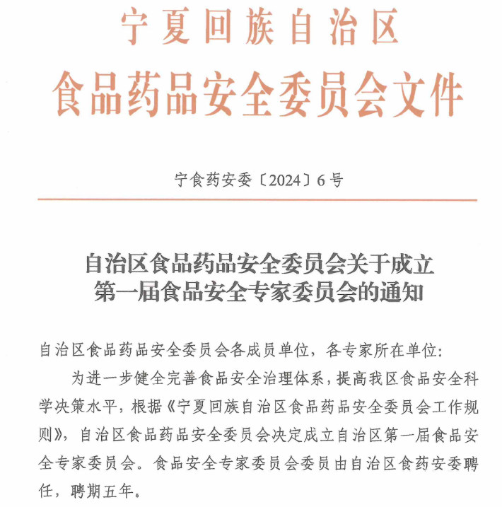 食品学院多位专家的加入将为专家委员会提供强有力的专业支持,助力更有效地开展食品安全风险评估、标准制定及技术指导等工作。学院将继续发挥其在食品安全领域的学术优势,为保障公众“舌尖上的安全”贡献力量,助力宁夏乃至全国食品安全工作的全面提升。