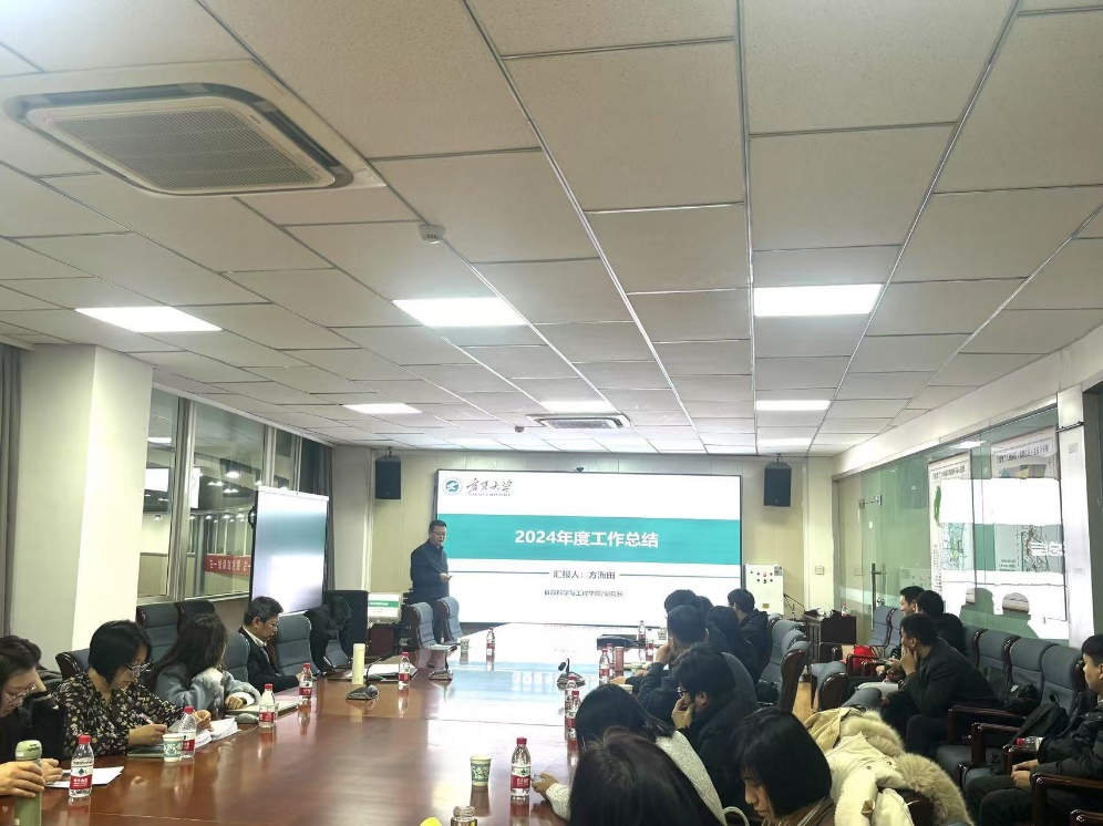 随后,学院领导班子对2024年的工作进行了全面回顾,并对2025年的重点任务进行了系统规划与部署。方海田副院长围绕研究生教育、学位点建设及实验室管理等方面进行了总结。他强调,全院上下要以强化思想素养为引领,秉持求真务实的态度,科学规划,稳步推进学院各项事业的发展。王松磊副院长重点汇报了本科教学评估、教学计划优化及教改项目申报等内容,提出要进一步完善教学体系,创新教学方法,全面提升教学质量。刘源院长代李文华副书记对2024年党建工作进行汇报,他从党建工作角度出发,详细总结了思想引领、组织建设、意识形态管理、作风建设等方面的成效,并对新一年在提升党建质量、压实主体责任、深化作风建设等方面的重点工作进行了展望。刘源院长又围绕师资队伍建设、科研创新及对外合作展开汇报。他提出,学院将在未来加大对青年教师的培养力度,积极拓展国际国内合作渠道,着力提升科研创新能力,全力推动学院实现高质量发展。