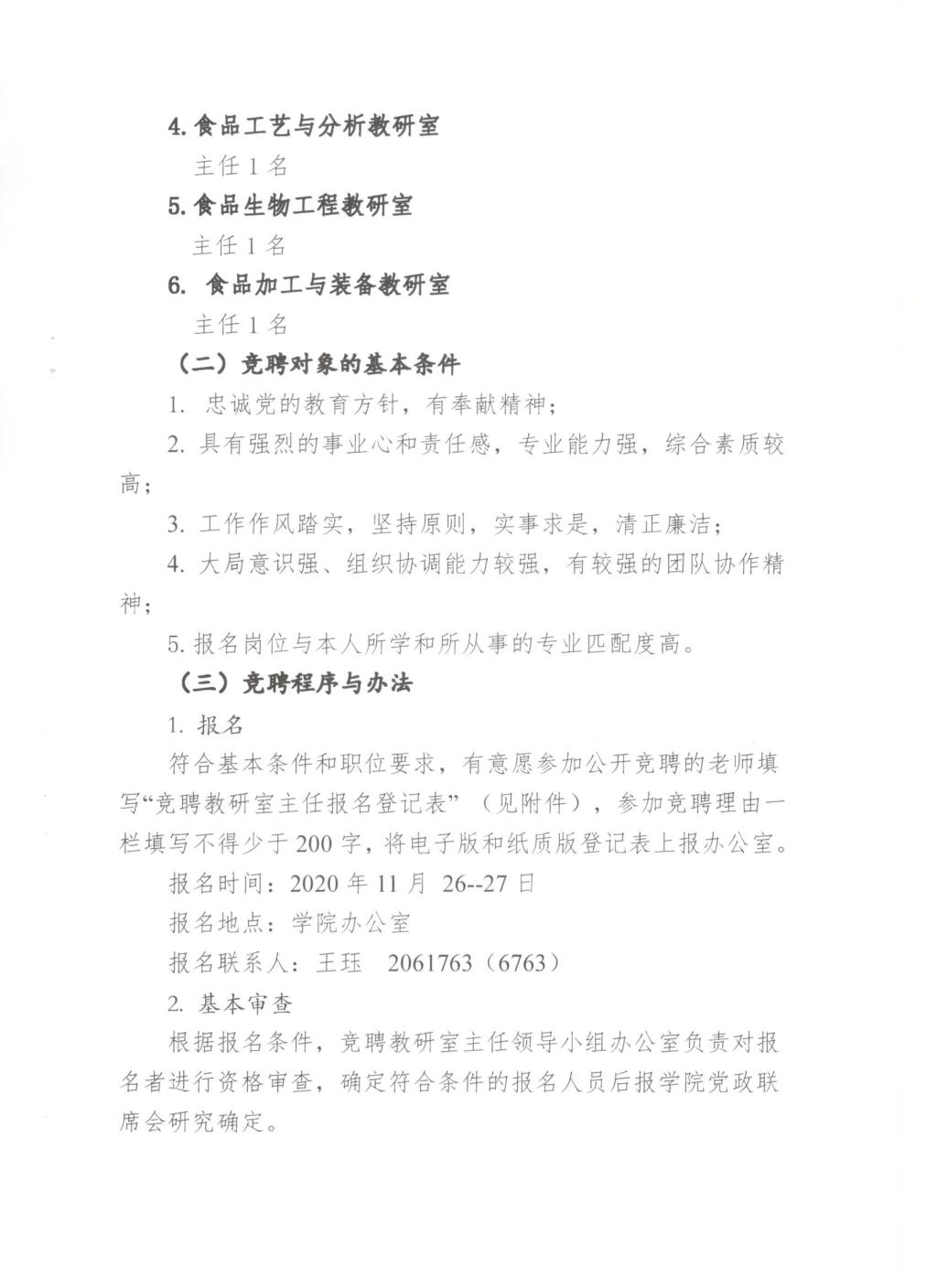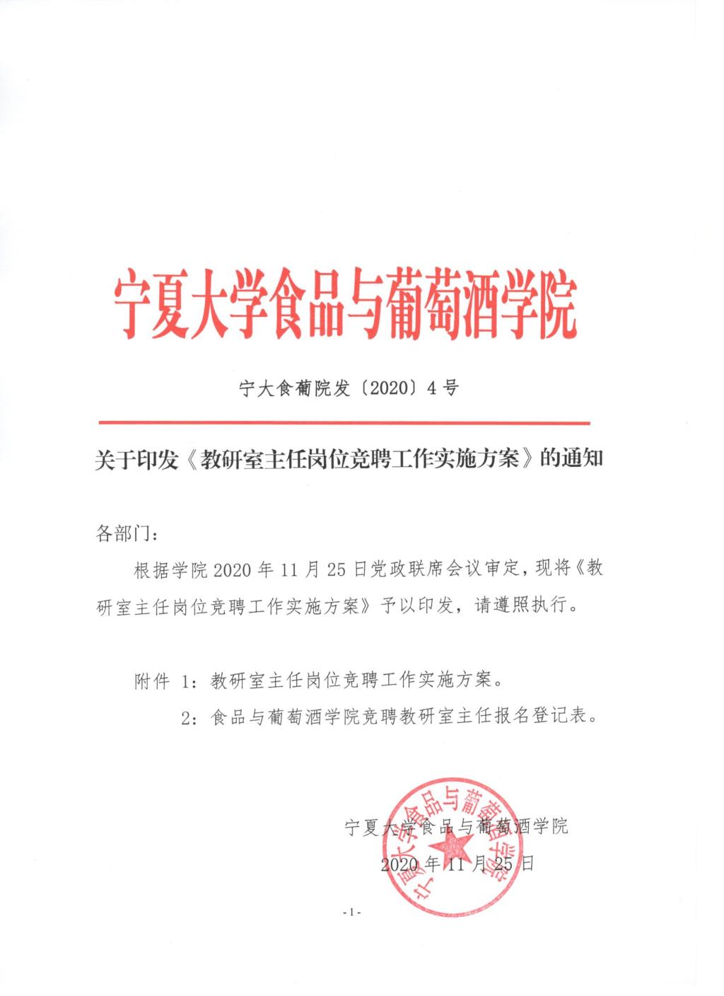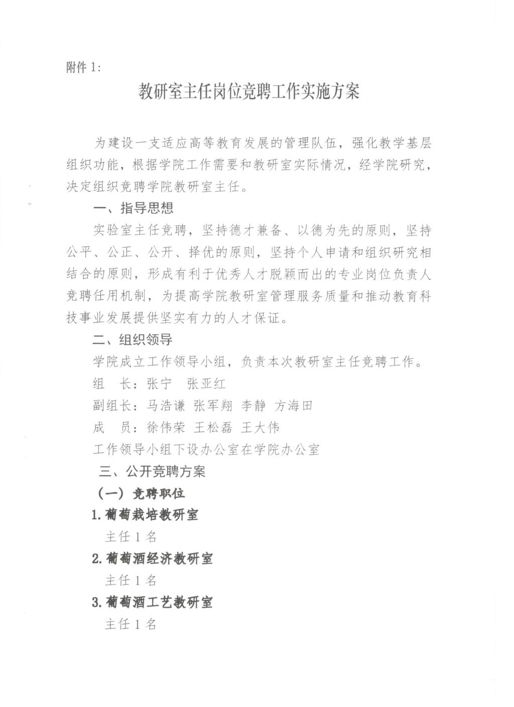 关于印发《教研室主任岗位竞聘工作实施方案》的通知