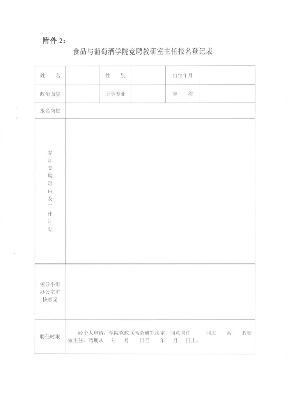 附件2 食品与葡萄酒学院竞聘教研室主任报名登记表.doc